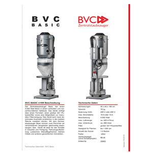 Datenblätter aller BVC Industry, Zentralstaubsauger für Industry und Gewerbe – Version 05/2018